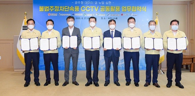 광주광역시는 27일 ▲5개 자치구 ▲광주시 CCTV통합관제센터의 CCTV 통신망 구축 사업 계약업체 ㈜LG유플러스 ▲CCTV통합관제센터의 영상관제솔루션 운용사인 영상관제 전문기업 이노뎁㈜와 업무협력 협약을 체결하고, 불법주정차 단속용 CCTV 영상정보를 공동 활용하는데 협력키로 했다.