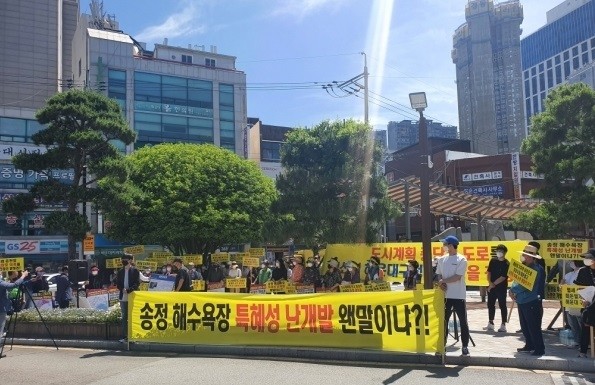 하지만 부산시와 해운대구청은 지난 2020년 5월13일 1-108중로가 해지되는 부지에 오히려 건축 허용을 발표함으로써, 특정인에게는 재산상의 이득을 주고, 송정주민들에게는 커다란 피해를 주게 되는 특혜성 도시계획 변경결정 고시의 공고를 강행했다고 주장했다.