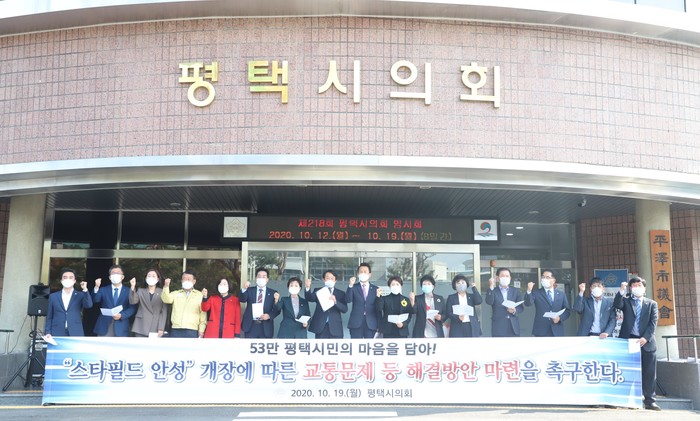 한편, 평택시의회의 16명 전체 의원이 공동 발의한‘스타필드 안성 개장에 따른 교통문제 등 해결방안 마련 촉구 결의안’은 19일 열린 제218회 평택시의회 임시회 제2차 본회의에서 채택됐다.