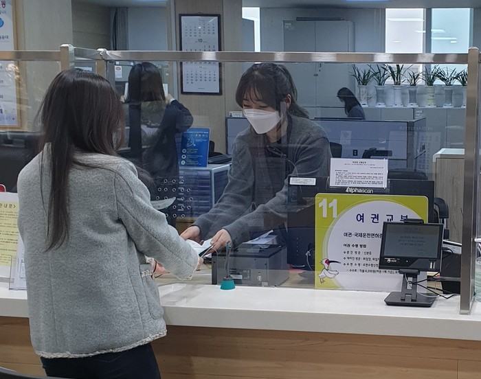 | ▲ 여권 교부를 받고 있는 모습이다. |