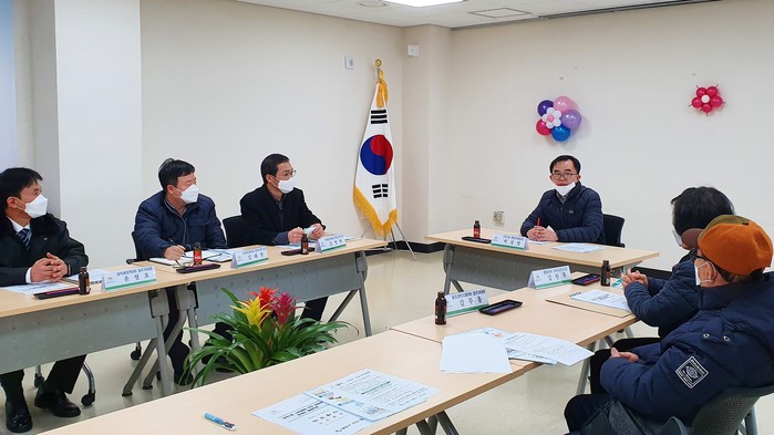 경기 수원시 팔달구 우만1동은 24일 폐기물 감량을 위한 공동주택 관계자 회의를 개최했다. 동 행정복지센터에서 열린 이날 회의에는 지역내 100가구 이상 공동주택 관리사무소장, 입주자 대표 등 6명이 참석한 가운데, 올바른 분리배출 문화 정착을 통한 생활폐기물 감량을 위해 머리를 맞댔다. 사진은 참여자들이 회의하는 모습. (사진제공=팔달구청)