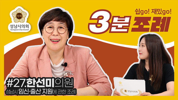 [성남=오왕석 기자] 성남시의회(의장 윤창근)는 6일 ‘성남시의회 3분 조례’ 스물일곱 번째 영상을 SNS에 게시했다.