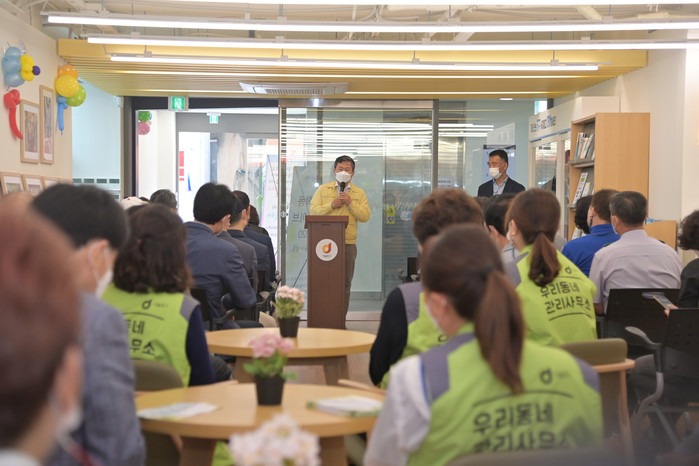 우선, '우리동네 관리사무소'는 노후주택가의 고질적인 골목길 청소, 생활안전 문제 등을 아파트 관리사무소처럼 책임지고 관리하기 위해 문을 연 공간으로 근무자는 모두 지역 주민으로 채용하여 주민들이 직접 운영해 나가는 것이 특징이다.