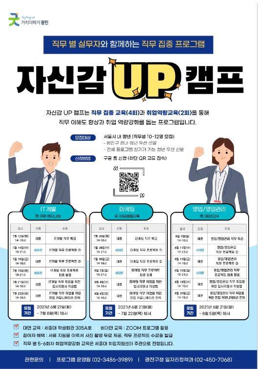 [시민일보 = 여영준 기자] 서울 광진구(구청장 김선갑)가 ‘청년의 성공적인 취업을 위한 자신감 UP캠프’를 개최한다.