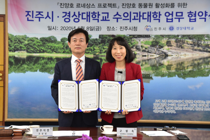 진주시는 8일 오전 경상대학교 수의과대학과‘진양호동물원 활성화’를 위한 업무협약을 체결했다고 밝혔다.