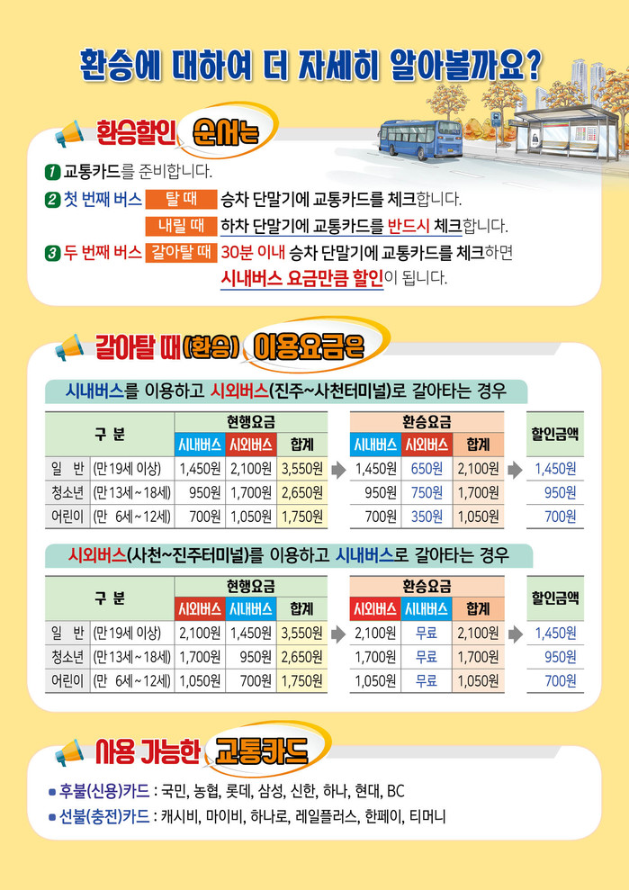 진주ㆍ사천지역 통행 시외-시내버스 간 환승 시 1450원 요금 할인
