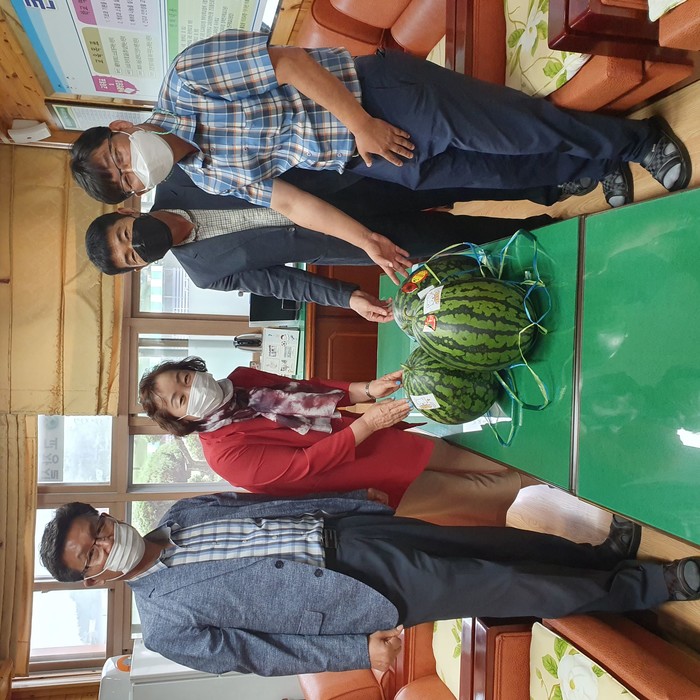 이번 수박 선물은 본격적인 더위가 시작되는 초복(16일)을 맞아 마스크 수업과 방역으로 힘겨운 여름을 보내고 있는 교직원들을 격려하기 위하여 전달되었다.