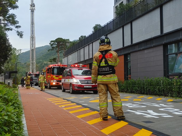 양산소방서(서장 박정미)는 지난 달 21일 양산시 동면 내송리 사송 신도시 사송더샵데시앙 아파트에서 화재대응을 위한 현지적응훈련을 실시했다고 2일 밝혔다.