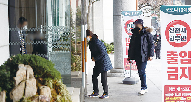 8일 오전 광주 남구 한 교회에서 예배에 참석하려는 신도가 교회당 건물에 들어서고 있다. 광주시와 5개 자치구는 신종 코로나바이러스 감염증(코로나19) 확산을 우려해 지역 1천400여개 개신교회를 방문해 집합 예배 자제를 호소했다.