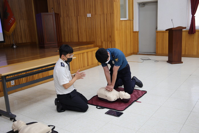 이날 교육은 휴가철을 맞아 피서객의 안전 및 치안을 위하여 여름파출소(양산시 원동면 배내골 소재)를 운영하기에 앞서 응급환자 발생 시 골든타임 확보 및 실질적인 응급처치를 위한 심폐소생술 및 안전교육을 실시하였다.