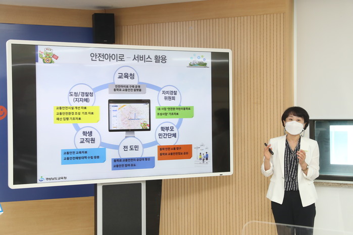 경남교육청은 학생의 눈높이에서 안전한 등하굣길을 만들어 교통안전을 강화하고자 통학안전시스템을 자체 개발했다.