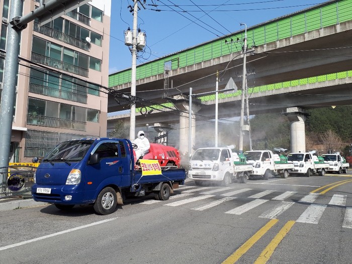시는 방역차량 7대와 강력분무기 2대를 이용하여 시가지 도로변, 고속도로 IC, 시군인근 진입로, 다중이용시설(역, 버스터미널, 5일장, 화장장)에 코로나 살균 소독 일제 방역을 실시하였고, 특히 시군 경계 지역인 상동면 외 4개 지역에 집중 방역소독을 실시하여 코로나 19 확산 방지를 위해 총력을 다하고 있다.