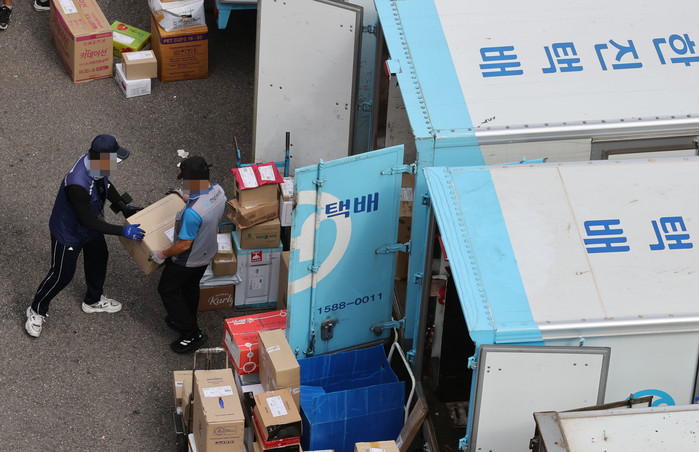 13일 오후 서울 시내의 한 택배 물류센터에 물품이 쌓여있다. 물류업계와 유통업계에 따르면 CJ대한통운과 롯데, 한진 등 대형 택배사들은 14일(금요일)을 '택배인 리프레시 데이'로 정해 휴무한다.