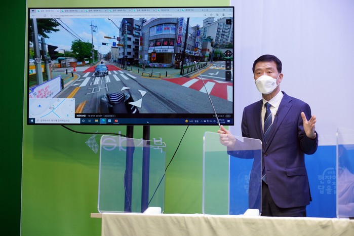 서울 성북구가 이달 1~17일 온라인 현장구청장실 운영하고 있다. 20개 전동 주민과 줌으로 영상회의를 진행하고 유튜브를 통해 실시간 방송해 주민 누구나 실시간 채팅으로 소통에 참여하고 있다. 사진은 이승로 구청장이 열린 스튜디오에서 실시간 주민과 소통하면서 민원을 해결하고 있는 모습. (사진제공=성북구청)