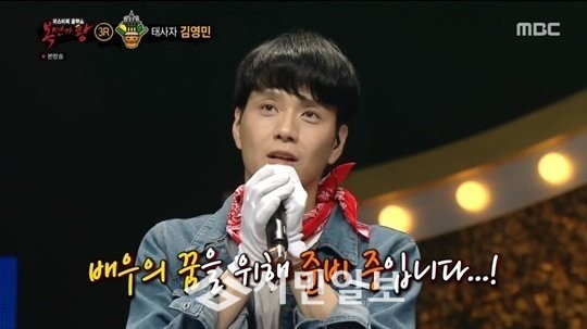 이날 김영민은 ‘탑골공원' 가면을 쓰고 무대에 올랐고, 3라운드 가왕 후보 결정전에서 아쉽게 탈락했다. 이에 김영민은 가면을 벗고 정체를 공개했다.