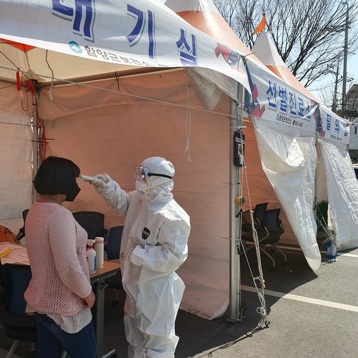 한편, 함양군은 24시간 선별진료소 운영, 시내‧외 버스터미널 발열체크 부스 설치, 주거 밀집지역의 방역을 강화해 관내 방역망을 촘촘히 하고 있으며, 군민들의 응원과 격려 메시지가 이어지고 있다.