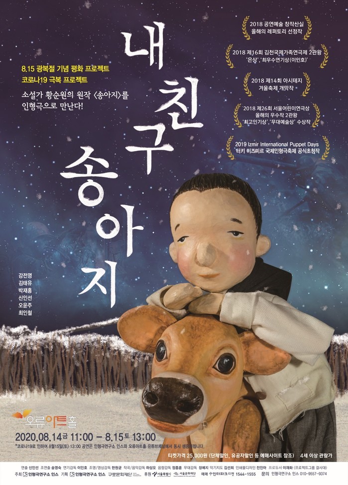 [시민일보 = 이대우 기자] 구로문화재단과 인형극연구소 인스가 <내 친구 송아지>를 오는 8월14~15일 양일간에 걸쳐 구로구 오류동에 위치한 오류아트홀에서 공연될 예정이다.