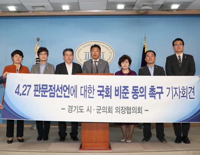 이에 경기도시‧군의회의장협의회에서는 2018년 10월 2일 여의도 국회의사당 정론관에서‘4.27 판문점 선언 국회 비준 동의 촉구 결의안’을 발표하였다. 결의안에는 판문점 선언의 실질적이고 지속적인 이행을 위한 법적 안정성 확보가 절실하며, 이를 위해 조속한 국회 비준동의를 촉구한다는 내용이 담겨 있다.