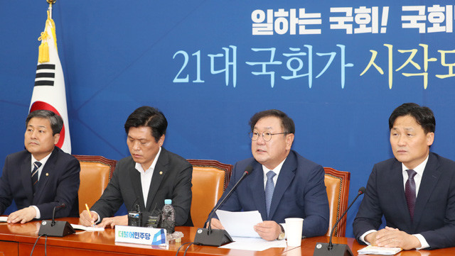 더불어민주당 김태년 원내대표는 31일 “민주당은 무슨 일이 있더라도 국회법에 따라 6월5일 개원해 의장단을 선출하겠다”고 밝혔다. 김 원내대표는 21대 국회 출범 기자간담회를 열어 “법이 정해진 날짜에 국회를 여는 것은 협상의 대상이 결코 아니다”라며 이같이 밝혔다. 그는 “새로운 국회, 일하는 국회의 시작은 법이 정한 날 국회 문을 여는 것”이라며 “야당도 국정 운영의 동반자로서 새로운 국회, 일하는 국회에 동참해달라”고 촉구했다.