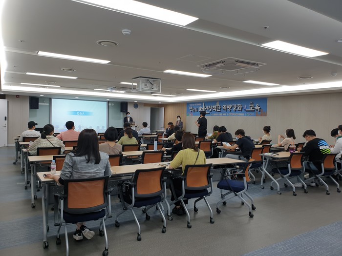 이날 교육은 경상남도 청년정책네트워크 1기 위원장을 지낸 진형익 강사의 주도로 1, 2부로 나누어 진행됐으며, 1부는 청년네트워크 과정의 이해라는 주제로 청정단의 역할과 앞으로 활동할 내용, 정책제안의 방법, 다양한 타 시군의 사례 등을 공유하고 2부는 청정단의 3개 분과와 3명의 퍼실리테이터로 구성하여 각 분과별 고민과 해결방안에 대하여 토론하는 시간을 가졌다.