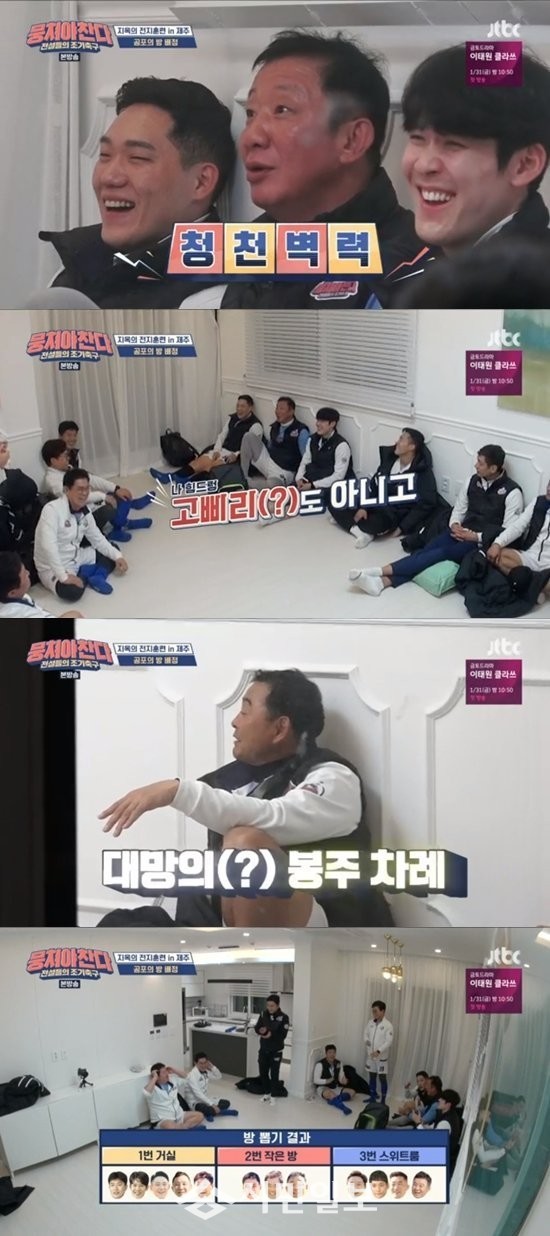 그 결과 1번 거실은 김병헌, 박태환, 모태범, 허재, 양준혁이 함께 쓰고, 2번 작은방은 여홍철, 이만기, 이봉주가 쓰게 됐다. 이봉주는 울상을 지어 웃음을 자아냈다. 가장 좋은 3번 스위트룸은 김종오, 김요한, 김동현, 이형택이 함께하게 됐다.