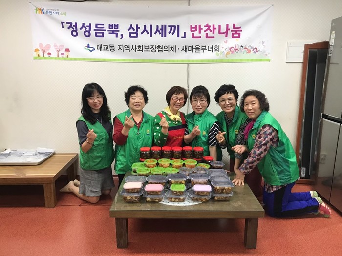 경기 수원시 팔달구 매교동 새마을부녀회에서는 최근 새마을부녀회 회원들과 함께 저소득층 소외계층을 위한 '정성듬뿍, 삼시세끼' 반찬나눔 행사를 통해 정감 넘치는 이웃사랑을 실천했다. 사진은 부녀회원들이 기념촬영을 하는 모습. (사진제공=팔달구청)
