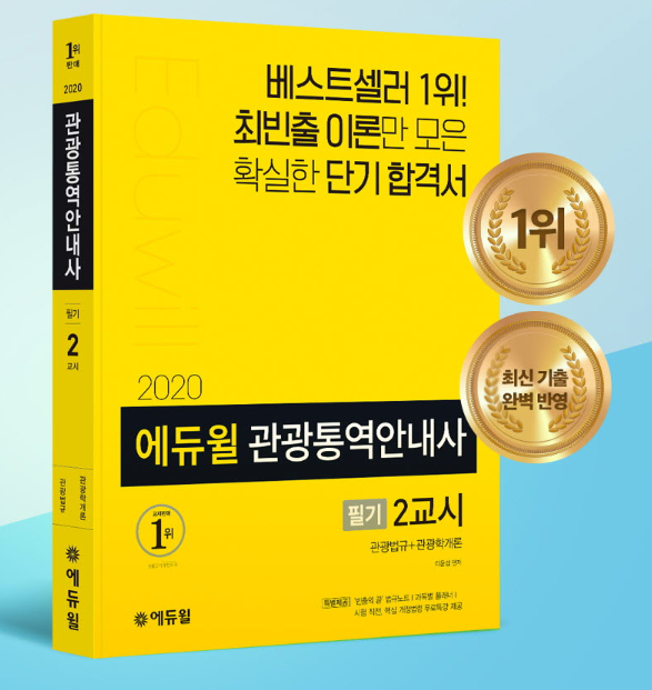 온라인서점 YES24의 6월 1주차 관광통역 부문에서 ‘2020 에듀윌 관광통역안내사 필기 2교시 관광법규+관광학개론’은 1위를, ‘2020 에듀윌 관광통역안내사 필기 1교시 국사+관광자원해설’은 2위를 차지한 것이다.
