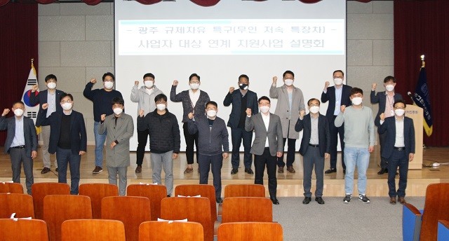 [광주=정찬남 기자] 광주광역시는 15일 광주그린카진흥원에서 ‘광주 무인저속특장차 규제자유특구’ 이전 기업 대상 연계 지원사업 설명회를 개최했다.