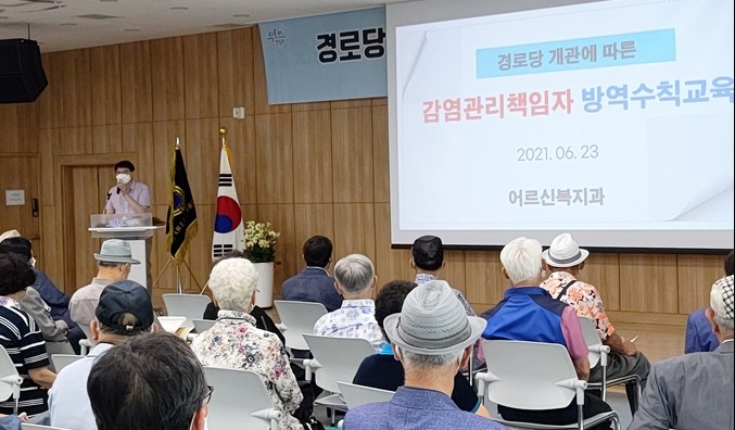 구는 지난 6월 23일 각 경로당별 감염관리 책임자 167명을 대상으로 책임자의 역할과 확진자(감염의심자) 발생 시 조치 매뉴얼 등의 내용에 대해 교육을 실시했다.