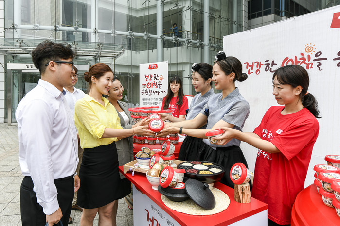 동원F&B는 지난 2008년부터 현대인들에게 ‘양반죽으로 아침먹기’ 캠페인을 진행해오고 있다. 광화문, 여의도 등 직장인들이 많은 출근길에서 간편하면서도 영양 만점인 양반죽을 무료로 증정하며 꾸준한 아침 식사를 권유하고 있다.