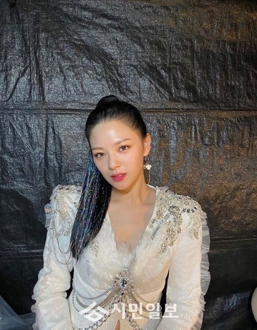 공개된 사진 속 정연은 포니테일 스타일의 머리와 화려한 화이트 의상으로 팬들의 감탄을 자아냈다.