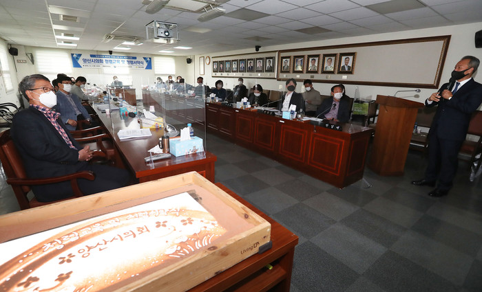 양산시의회는 지난2일 의회 3층 특별위원회실에서 국민권익위원회 소속 청렴연수원 강사를 초빙해 양산시의회 의원과 직원들을 대상으로 ‘지방의회 청렴연수과정’을 실시하였다. 이날 교육은 공정한 조직문화를 조성하기 위한 선출직 공무원 맞춤형 청렴교육으로 주민의 대표로서 신뢰받는 지방의회를 정립하고자 시행되었다.