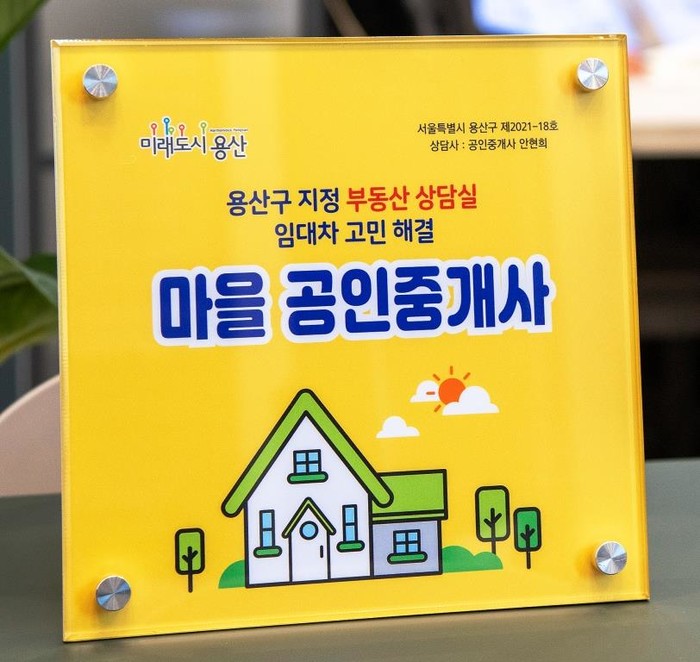 | ▲ 용산구 마을공인중개사 지정판. (사진제공=용산구청) |