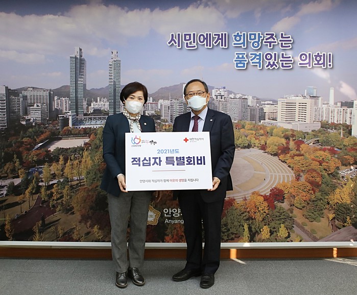[안양=최휘경 기자] 경기 안양시의회가 ‘2021년 적십자 특별회비’ 100만원을 대한적십자사 경기도지사에 전달했다.