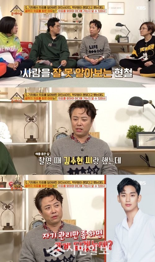 이를 듣던 김용만과 정형돈이 "김수현이 주인공 아니었냐?", "같이 촬영하고 있는 주인공인데도?"라고 묻자 서현철은 "주인공이었다", "그렇다"라고 답해 안면인식장애를 실감나게 했다.
