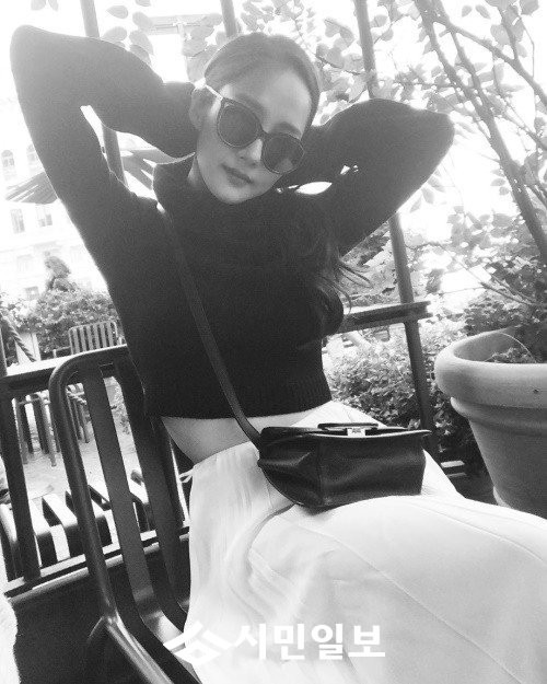 공개된 사진 속 박민영은 선글라스를 쓰고 테라스 의자에 앉아 포즈를 취하고 있다.