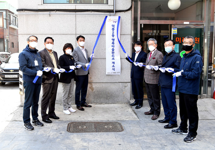 경기 하남시는 지난 19일 주민들에게 생활밀착형 공공서비스를 제공하는 덕풍2동 행복마을관리소 개소식을 열었다. 행복마을관리소는 지역안심 순찰, 무인택배함 등 서비스를 제공하게 된다. 사진은 김상호 시장(왼쪽 네 번째)이 관계자들과 개소식에서 제막식을 하고 있는 모습. (사진제공=하남시청)