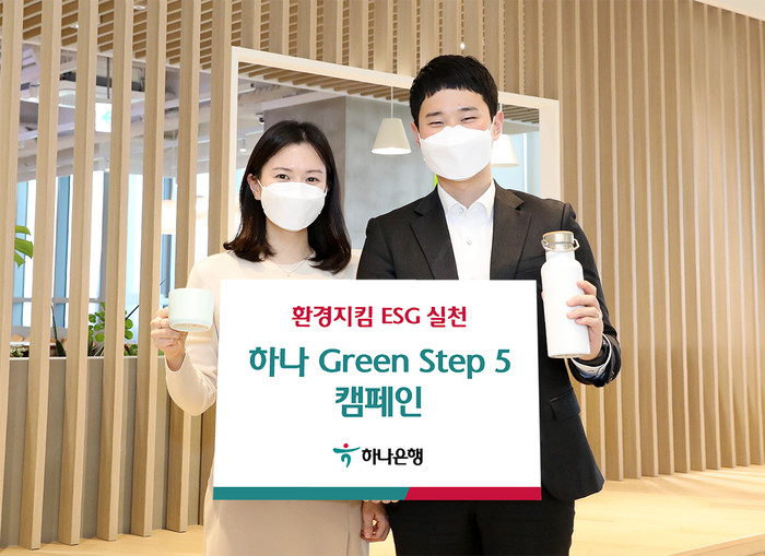 하나은행에 따르면 이번 캠페인은 코로나 19 장기화로 마스크 사용의 일상화와 배달 및 포장서비스의 급증으로 일회용품 폐기물이 날로 늘어나는 등 환경이 위협받는 현 상황을 임직원 모두가 환경 문제로 인지하고, 친환경적인 사내 문화를 조성하고자 '하나 Green Step 5 캠페인'을 실시하게 됐다.