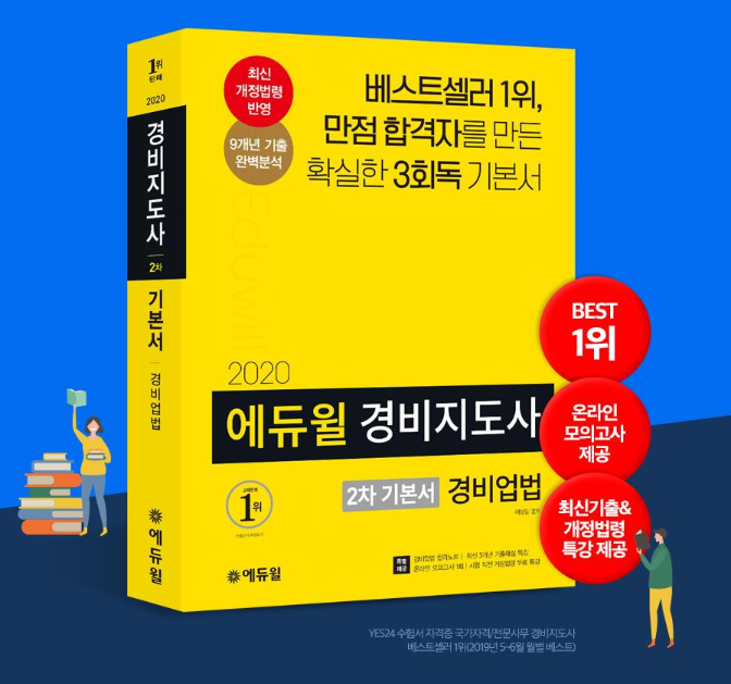 온라인서점 YES24의 경비지도사 부문 6월 3주차 베스트셀러 1위는 ‘2020 에듀윌 경비지도사 2차 기본서 경비업법’ 교재가 이름을 올렸으며, 2위는 ‘2020 에듀윌 경비지도사 1차 기본서 민간경비론’, 3위는 ‘2020 에듀윌 경비지도사 2차 기본서 경호학’, 4위는 ‘2020 에듀윌 경비지도사 1차 기본서 법학개론’ 교재가 차지했다.