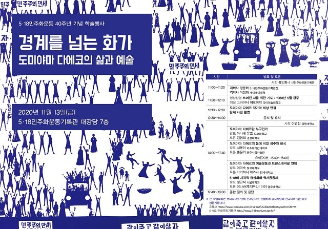 ‘경계를 넘는 화가: 도미야마 다에코의 삶과 예술’이라는 주제로 열리는 이번 학술대회는 1980년 당시 고립된 광주를 세계에 알린 작가의 예술운동을 조명하기 위해 기획됐다.