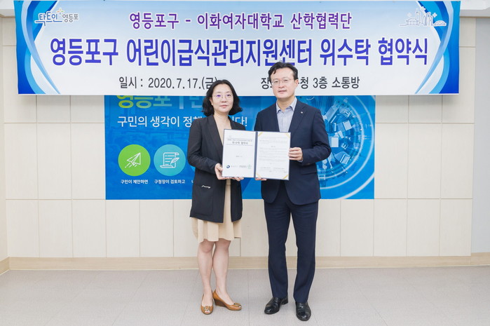 [시민일보 = 여영준 기자] 서울 영등포구(구청장 채현일)가 최근 이화여자대학교 산학협력단과 건강한 어린이 급식을 위한 '영등포구 어린이급식관리지원센터 위수탁 협약'을 체결했다.