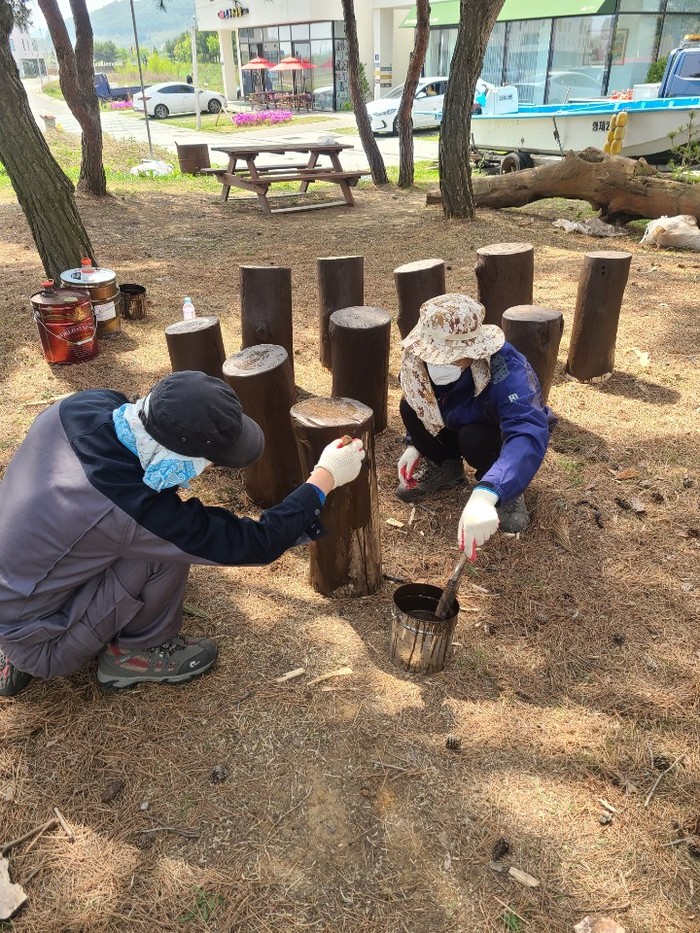 인천 중구는 폐자원 재활용과 쉼터 및 녹지 휴식 공간 조성을 위해 공원이나 녹지, 산림에서 발생하는 고사목 등 버려지는 목재를 재활용해 제작한 다람쥐 통나무 의자를 지역내 쉼터와 녹지에 설치하기로 했다. 사진은 다람쥐 통나무 의자를 제작하고 있는 모습. (사진제공=인천 중구청)