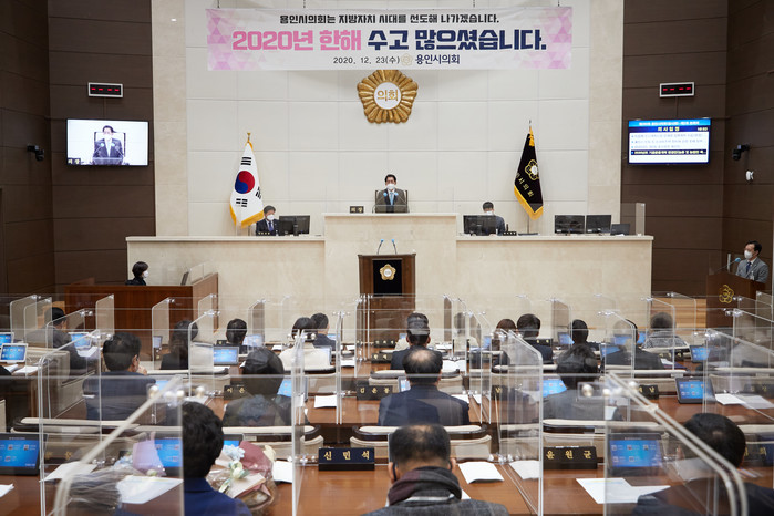 [용인=오왕석 기자] 용인시의회(의장 김기준)는 23일 본회의장에서 제250회 임시회 제2차 본회의를 끝으로 2020년도 의사일정을 마무리했다.