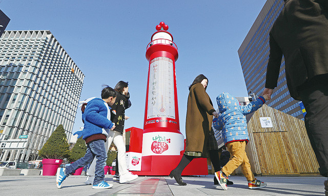 서울 광화문광장에 설치된 사랑의 온도탑이 23.2도를 가리키고 있다.