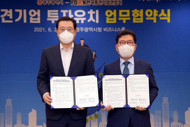 [광주=정찬남 기자] 광주광역시는 29일 시청 비즈니스룸에서 한국중견기업연합회와 중견기업 투자유치 활성화를 위한 업무협약을 체결했다.
