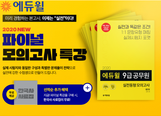[시민일보 = 황혜빈 기자] 종합교육기업 에듀윌이 9급공무원 시험지와 동일하게 구성한 '파이널 모의고사 특강'을 선보인다고 21일 밝혔다.