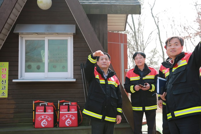 경기 수원시 장안구 이병규 구청장을 비롯한 관계공무원 10여명은 지난 14일 광교산 주요 등산로와 산불취약지를 현장점검하고, 산불대책본부와 감시초소를 방문해 산불예방 등을 위해 근무 중인 직원과 산불방지종사원들을 격려했다. 사진은 이 구청장(왼쪽)이 관계자들과 현장을 점검하는 모습. (사진제공=장안구청)