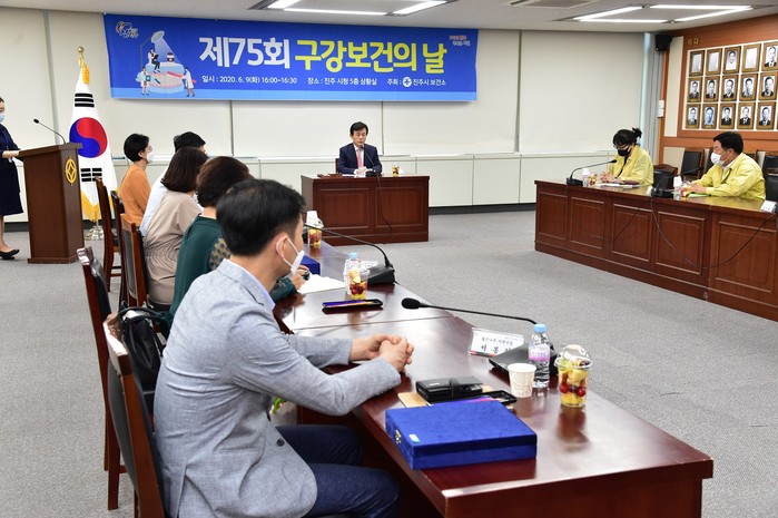진주시는 지난 9일 오후 4시 진주시청 5층 상황실에서 제75회 구강보건의 날을 맞이하여 구강보건사업 유공자에게 표창을 수여하였다. 시는 코로나19로 인해 내빈이 참여하는 기념식은 생략하고 진주시민의 구강건강 증진을 위해 애쓴 유공자에게 표창을 전달하며 그 동안의 노고를 치하했다.
