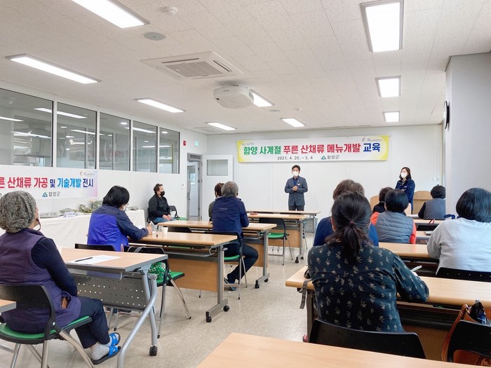 함양군은 20일부터 5월 4일까지 농업기술센터 군민요리교육관에서 지역 농·특산물과 산채류를 이용한 사계절 푸른산채류 가공교육과 메뉴개발 교육을 실시한다고 밝혔다.