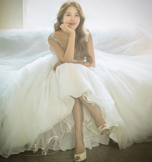 공개된 사진 속 박새별은 웨딩드레스를 입고 우아한 미모를 뽐내고 있다.